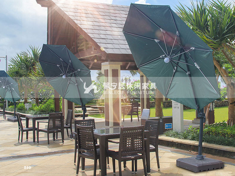 側柱遮陽傘通常使用380g帶有鋁合金肋的聚酯纖維布。側柱傘可分為單面傘,旋轉傘,香蕉傘等。所有遮陽傘中最好的遮陽設計是旋轉雨傘,也稱為羅馬傘。傘身可以在生活水平上旋轉360度到不同位置,也可以在垂直展開方向旋轉90度。旋轉傘的最大特點是可以自由移動,遮陽效果也是最好的。這種單面雨傘不僅具有良好的遮光效果,而且具有很強的廣告市場效果。可以在遮陽傘表面印制標志,具有良好的推廣。