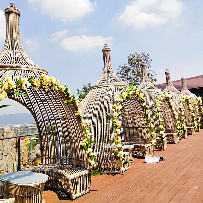 戶外家具多采用PE藤編織而成,因為PE藤無毒無害,耐曬防雨抗老化,放在室外風吹雨淋3-5年都不褪色,和嬰兒奶嘴-個材質,非常的安全環保,純手工編織的包裹感也很強哦。