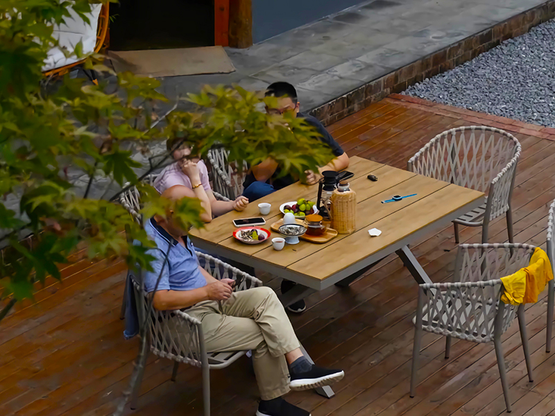午后,藤椅、圓桌、一杯香茗,伴著花香,靜享閱讀時(shí)光,或是與家人閑坐聊天,孩子在一旁嬉笑玩耍,溫馨四溢。