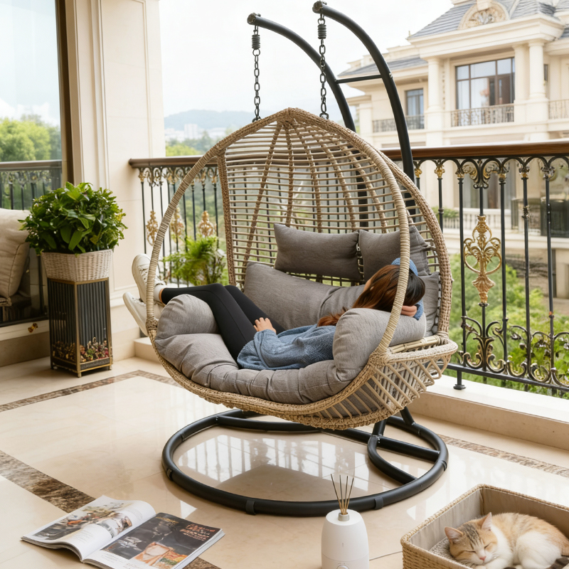 擺上鐘愛的雙人吊籃,擺放幾本翻舊的書,或是一個香薰機。這些微小細(xì)節(jié),才是“治愈角”的靈魂。