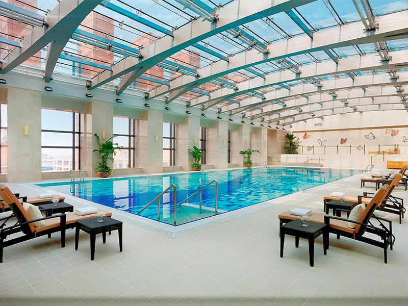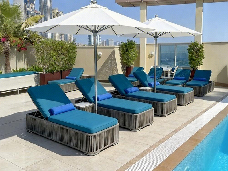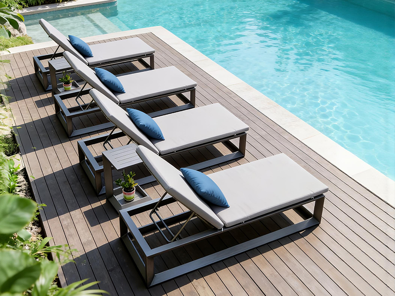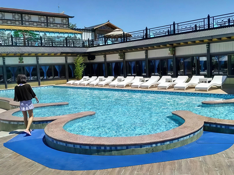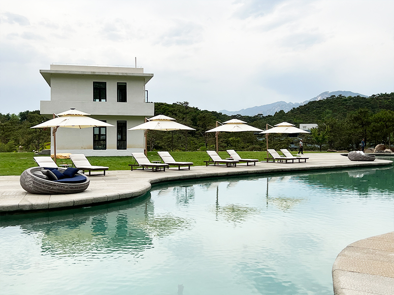步入湯池,霧氣氤氳。當身體浸入暖泉,視線卻總不自覺落向池邊——那排靜靜守候的泳池躺椅,線條溫潤,氣質從容。