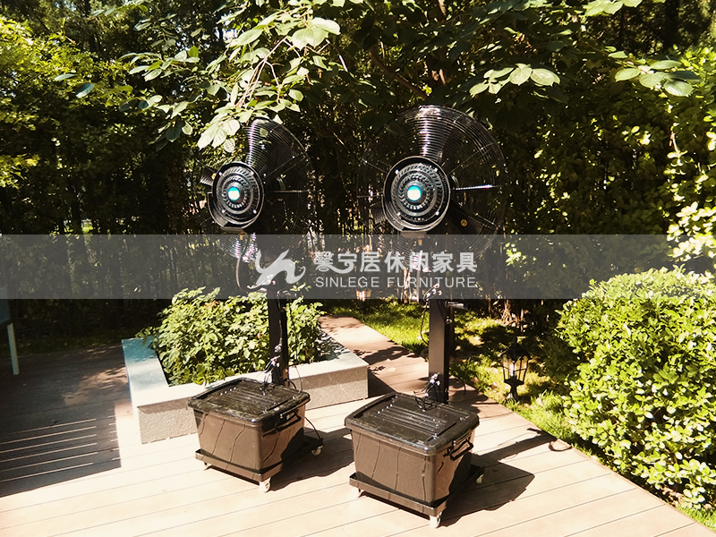 此款降溫電風扇利用先進的離心式二次霧化原理,使水在旋轉碟和霧粒噴散裝置作用下,利用離心力產生超微小的霧滴小于10微米,因此極大地提高了蒸發表面積;霧滴通過強力離心霧化風扇吹出氣流,極大地提高了液體表面風速,加快氣體分子的擴散,因此水的蒸發量大大提高。在水的蒸發過程中吸收熱量,降低溫度,噴霧風扇霧離子快速釋放的過程中迅速吸收空氣溫度并凈化空氣。并可減少粉塵,凈化空氣。