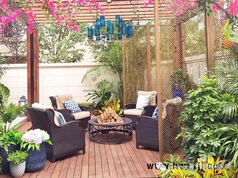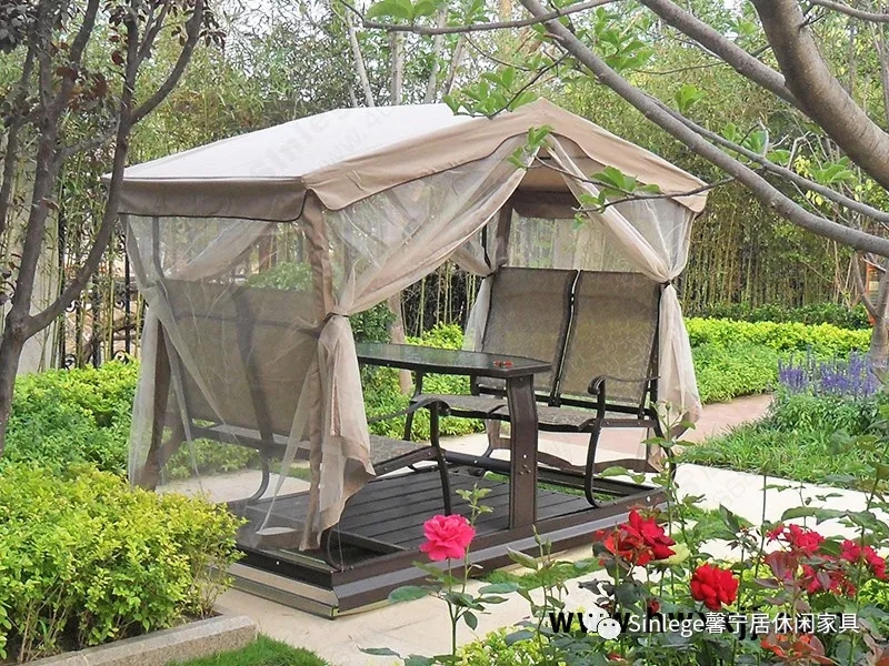 涼亭和搖椅,也能營(yíng)造出輕松的戶外就餐空間,而且別有一番浪漫氣氛。一種親近自然的休閑生活方式油然而生!