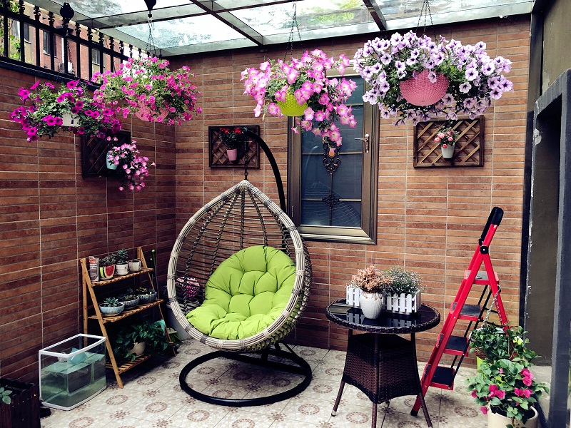 在空中花園的陽臺上放一個吊椅,坐在上面翻閱著雜志,玩玩手機,悠來晃去,就仿佛讓你回到兒時蕩秋千時的場景,好不逍遙自在!