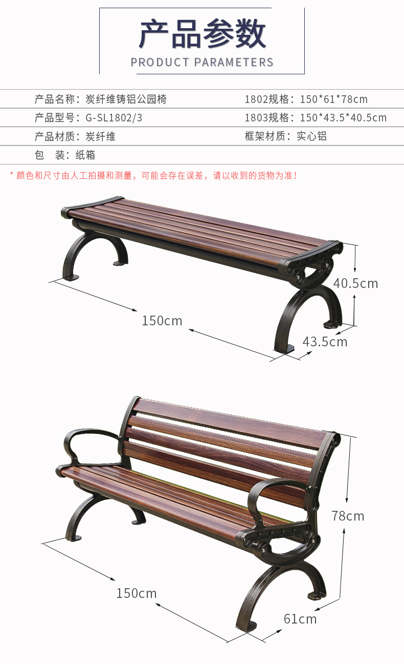 戶外鑄鋁公園椅G-SL1802/3