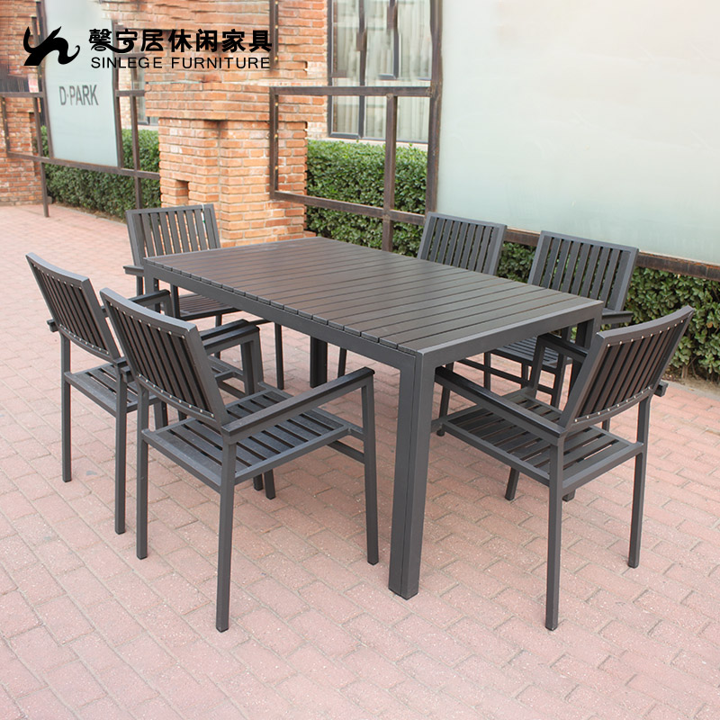 鋁合金也是戶外家具中的比較常見的一種材質,它的特點是框架全是鋁合金材質。而與其他戶外家具的不同之處在于,它是與除藤編以外的其他材料結合的,例如,特斯林網布、環保木等。鋁合金戶外家具通常多為現代簡約風格,價位相對適中,適合大眾群體,而且重量也比傳統戶外家具輕巧,易于移動搬挪。