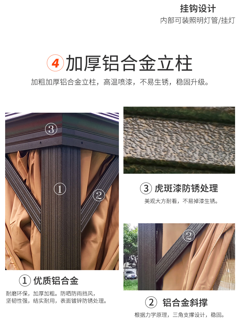 - 材質(zhì):全鋁合金框架,鍍鋅頂板