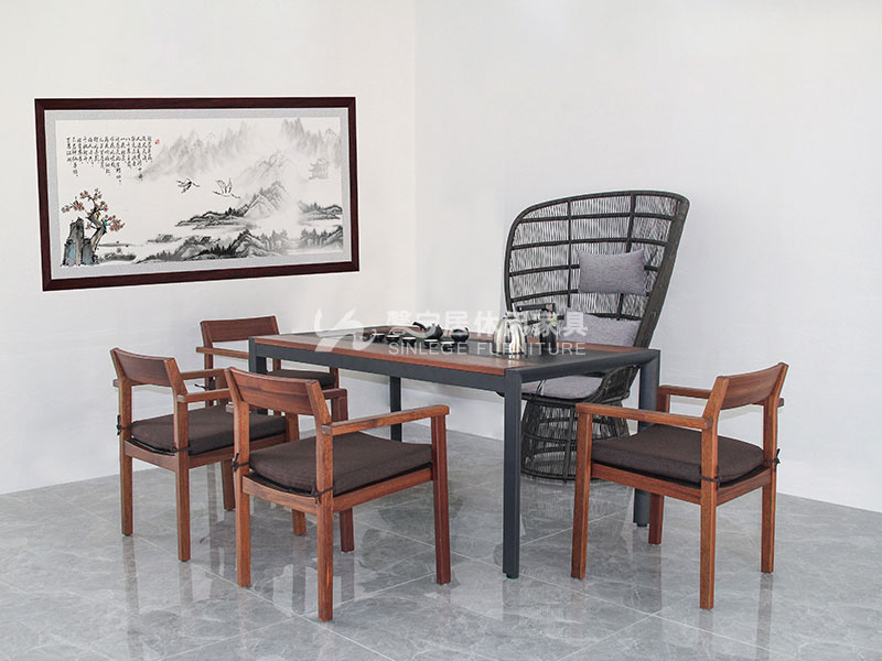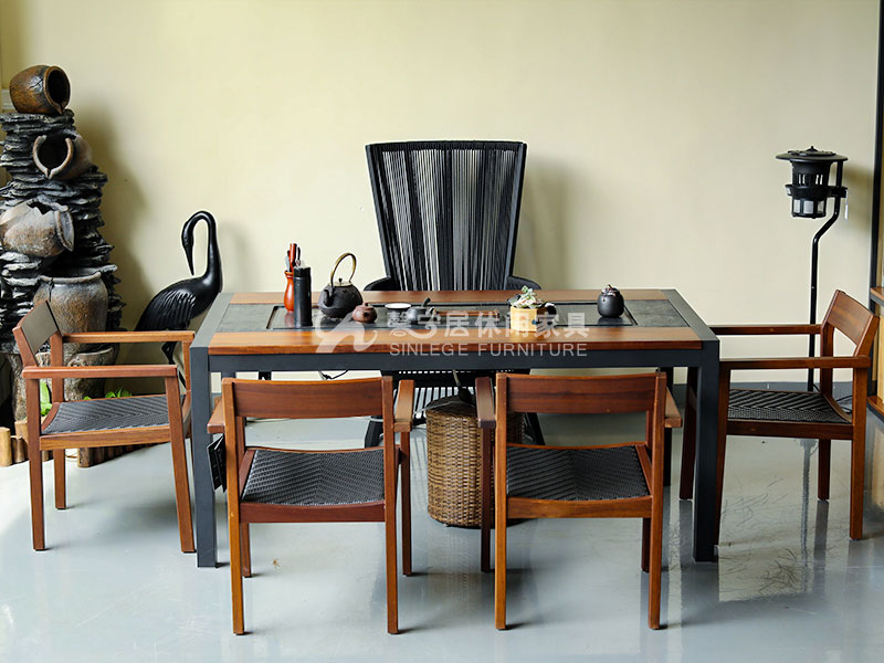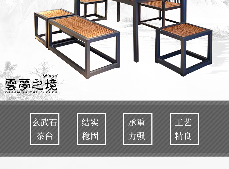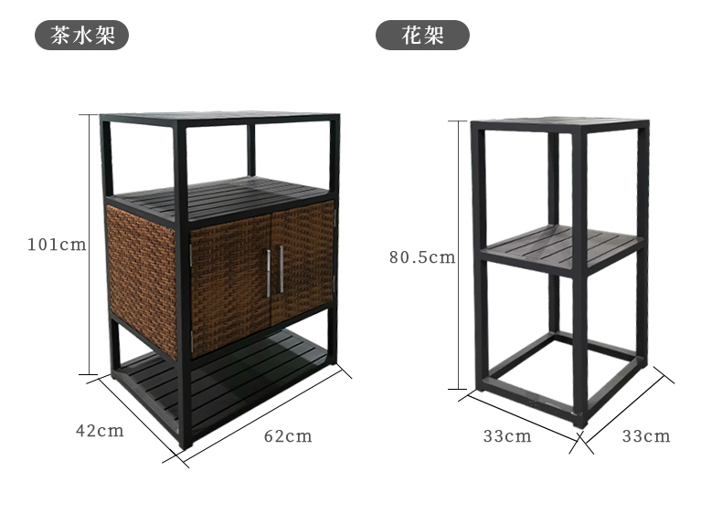 - 材質:鋁合金框架+啱石茶臺+藤編