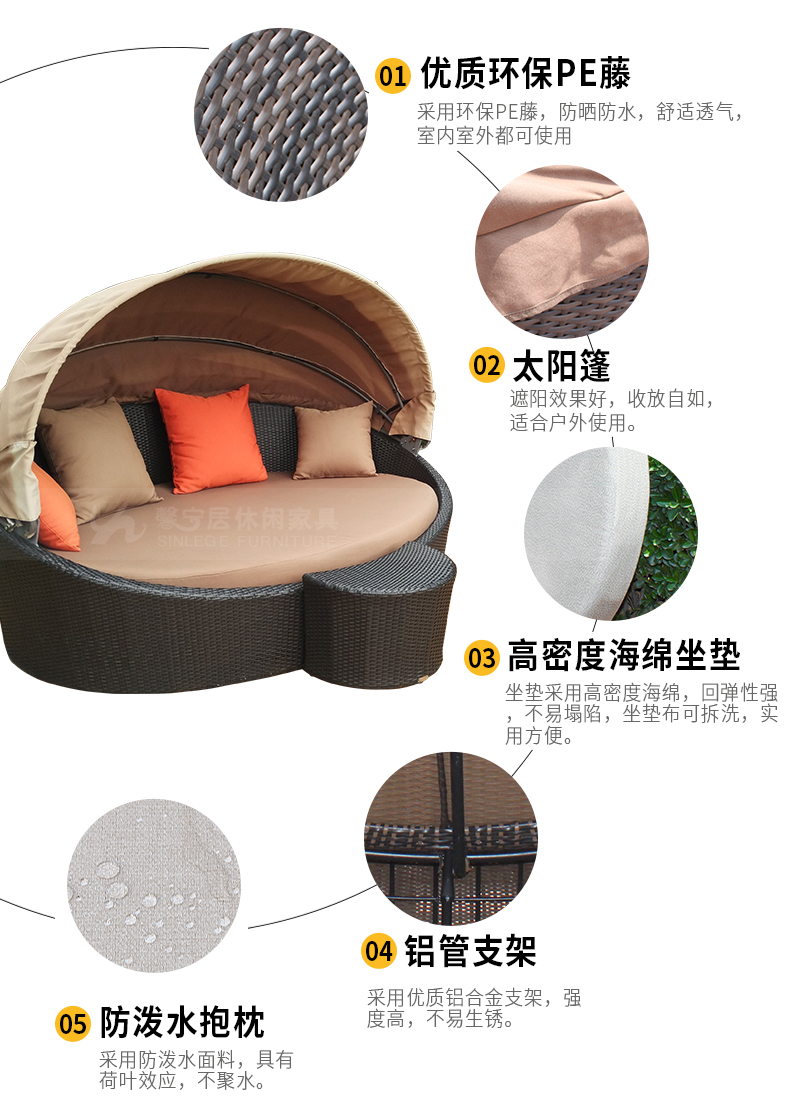 - 材質(zhì):藤編+鋁合金+滌綸布