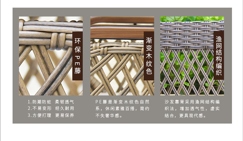 - 材質:全鋁合金框架,進口雙股PE藤編