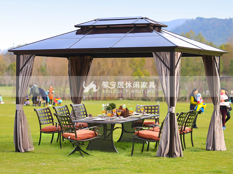 第一類是固定性戶外家具,如涼亭、秋千、遮陽蓬等,一般來說,這類家具應具有良好的耐腐蝕性,重量相對較重。應長期放置在室外。