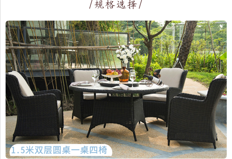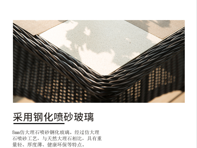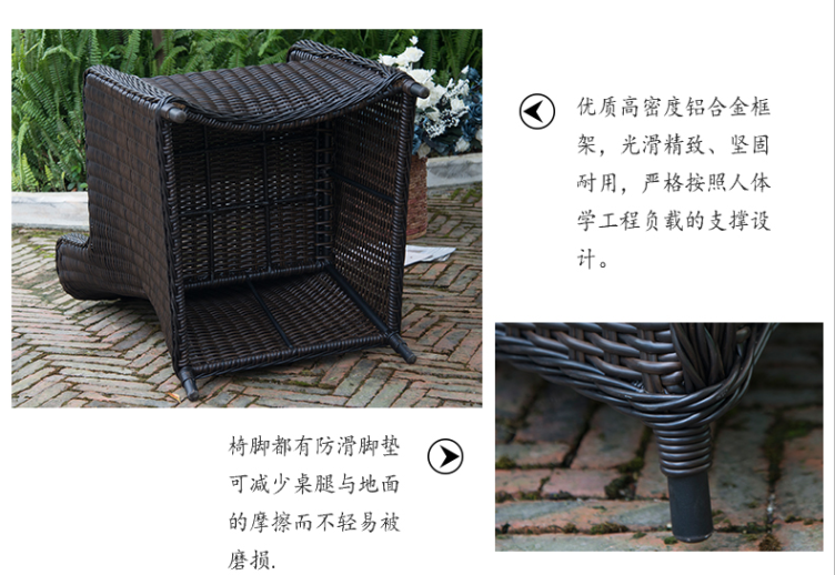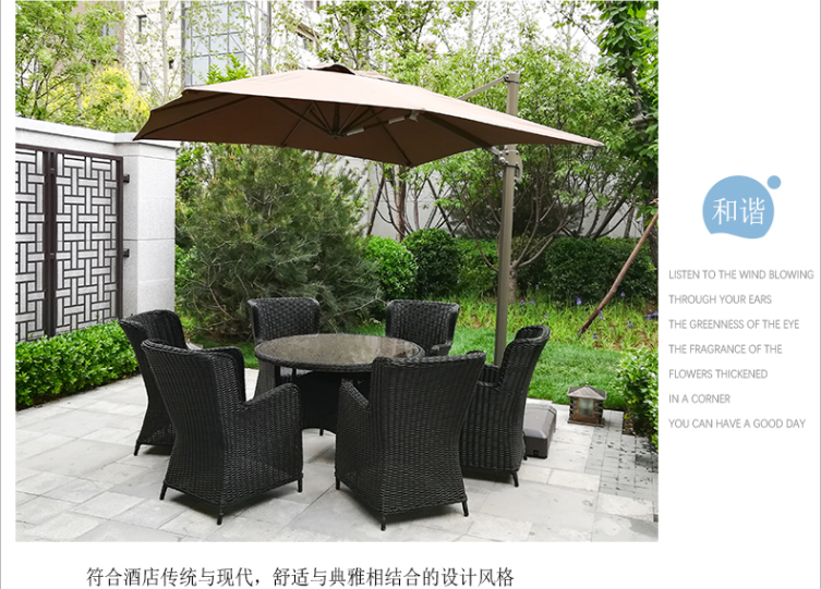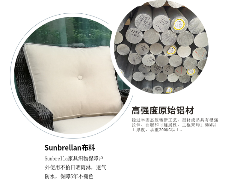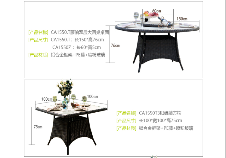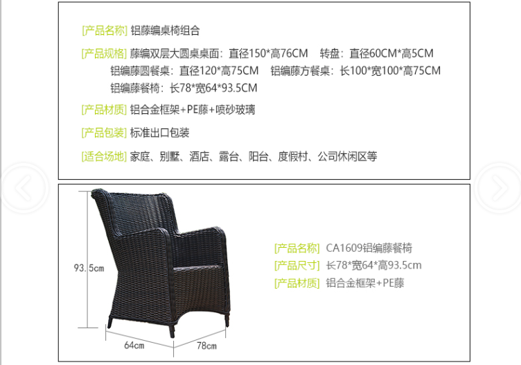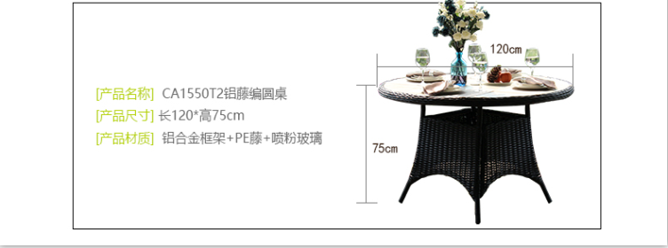 - 材質:鋁合金框架+PE藤帶傘孔+噴粉玻璃